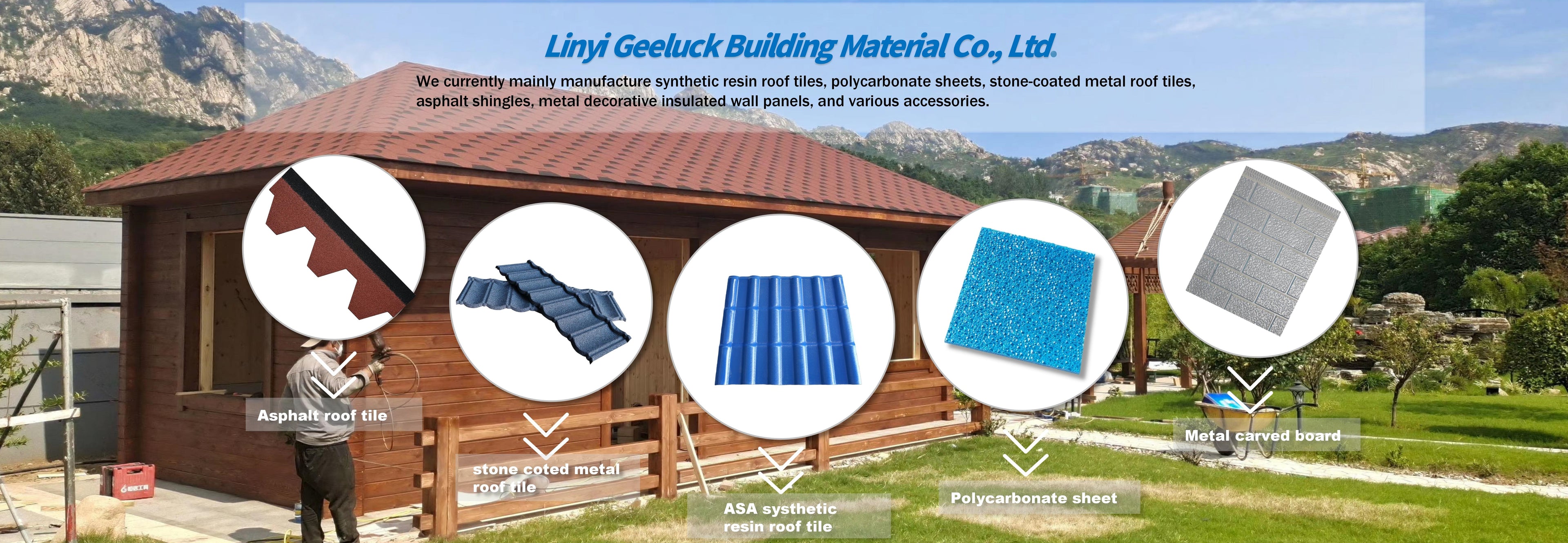 Linyi Geeluck Building Material Co., Ltd. specializes in the production of ASA synthetic resin roofing tiles, FRP skylight roofing tiles, PC skylight roofing tiles, and metal carved panels (exterior wall decoration panels). Established in 2013, our company now operates 12 production lines across 4 major product categories, with a factory area of 30,000 square meters and an inventory capacity of over 100,000 square meters. Equipped with an excellent technical team and sales team, our company is your ideal partner for selecting steel structure roofing materials!